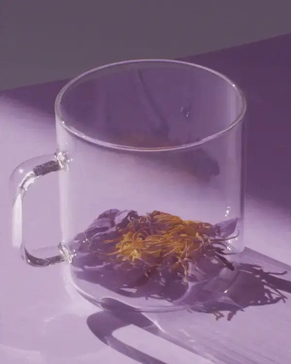Measure — Add about 1.75g (or 2 flowers) of Blue Lotus into your glass mug or teapot.